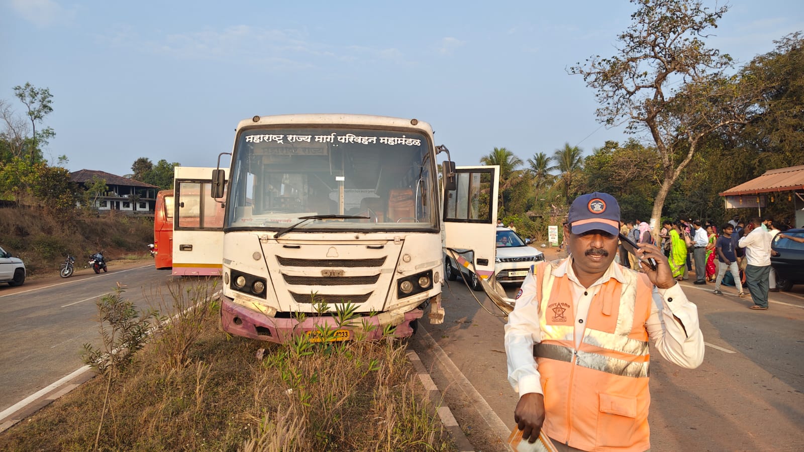 पुणे पासिंगची कार गोव्याकडून पुण्याच्या दिशेने भरधाव जात होती. ओसरगाव येथे आल्यावर चालकाचे कारवरील नियंत्रण सुटले. कार वेगाने डिव्हायडरवर चढून विरुद्ध दिशेच्या लेनमध्ये आली. त्याच वेळी समोरून एसटी येत होती. अचानक समोर आलेल्या कारला वाचवण्यासाठी बस चालकाने सतर्कता दाखवत बस तातडीने बाजूला घेत डिव्हायडरवर चढवली. बस चालकाच्या या धाडसी निर्णयामुळे मोठी जीवितहानी टळली. या अपघातामध्ये एसटीच्या डाव्या बाजूचे प्रचंड नुकसान झाले आहे. या भीषण धडकेत कारच्या समोरील आणि मागील भागाचा चक्काचूर झाला आहे. कारमधील दोघांना गंभीर दुखापत झाली असून त्यांना तातडीने अधिक उपचारासाठी जिल्हा रुग्णालयात दाखल करण्यात आले आहे. अपघाताची माहिती मिळताच स्थानिक आणि महामार्ग वाहतूक पोलीस मदत केंद्राच्या पोलिसांनी घटनास्थळी धाव घेत अपघातग्रस्तांना उपचारासाठी मदतकार्य केले.