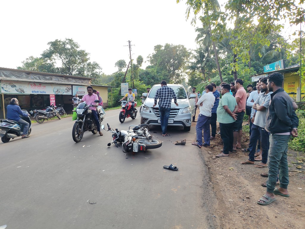 सावंतवाडी : मळगाव येथे सायंकाळी सुमारे ४:४५ वाजताच्या सुमारास इनोव्हा कार आणि दुचाकी यांच्यात अपघात झाला. या अपघातात दुचाकीस्वार सुरज परब (रा. तळवडे) हा जखमी झाला. इनोव्हा कार सावंतवाडीच्या दिशेने जात असताना मळगाव येथून आपल्या तळवडे येथील घरी जात असलेल्या दुचाकीस्वाराचा अपघात झाला. यात दुचाकी रस्त्यावर कोसळली आणि परब जखमी झाला. घटनेनंतर नागरिकांनी तत्काळ धाव घेऊन जखमी दुचाकीस्वाराला मदत केली. त्याला उपचारासाठी रुग्णालयात हलवले. अपघातानंतर परिसरात काही काळ वाहतूक कोंडी झाली होती. दरम्यान, मळगाव परिसरातील हा राज्य मार्ग अत्यंत अरुंद असून वाढत्या वाहतुकीमुळे वारंवार अपघात होत आहेत. नागरिकांनी या मार्गाचे तातडीने रुंदीकरण करण्याची मागणी केली आहे.