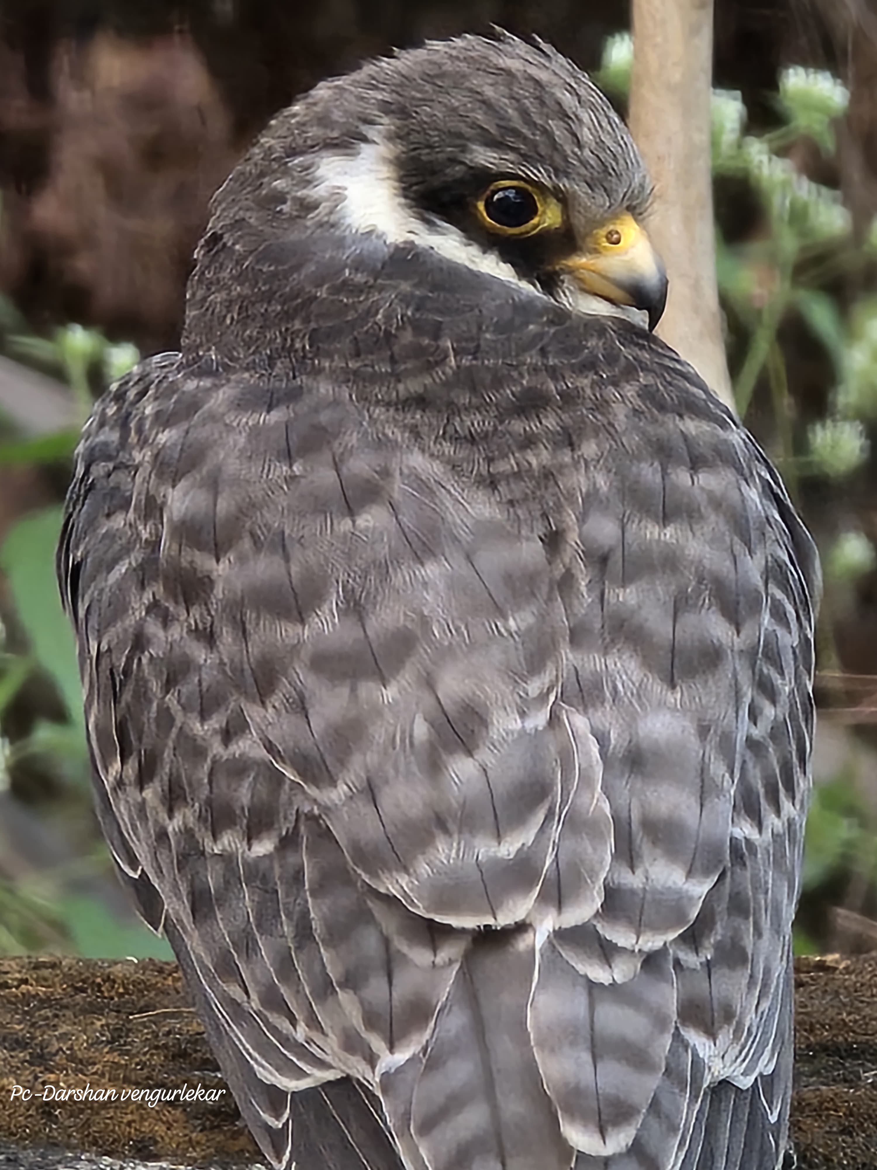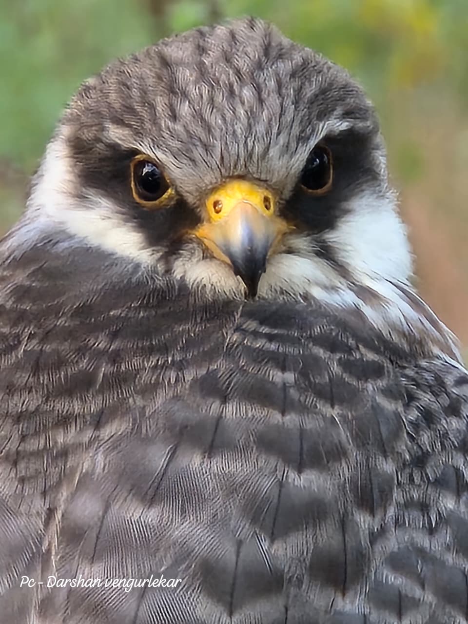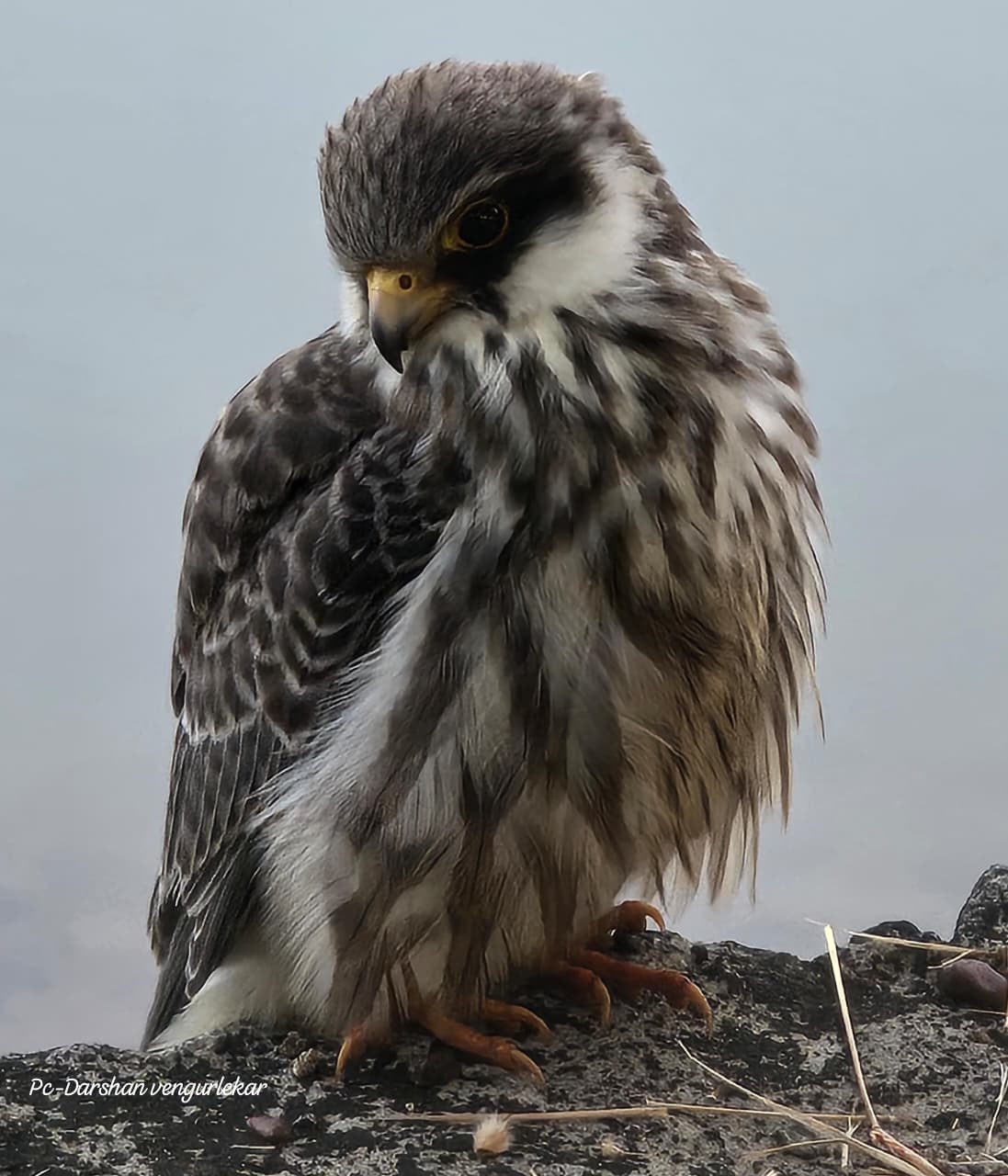 अक्षयने बघताक्षणी पक्षाला ओळखले. हा अतिशय दुर्मिळ पक्षी आहे. कबुतरा पेक्षा थोडा लहान असलेला असा हा पक्षी. त्याची चोच डोळ्या सभोवतालचा भाग, पाय, पिवळसर नारंगी रंगाचे होते. छाती कडचा भाग करडा आणि त्यावर काळ्या आडव्या पट्ट्या होत्या. शेपटी कडचा भाग थोडासा पट्ट्याचा आणि काळ्या रंगाचे पीस दिसत होते.