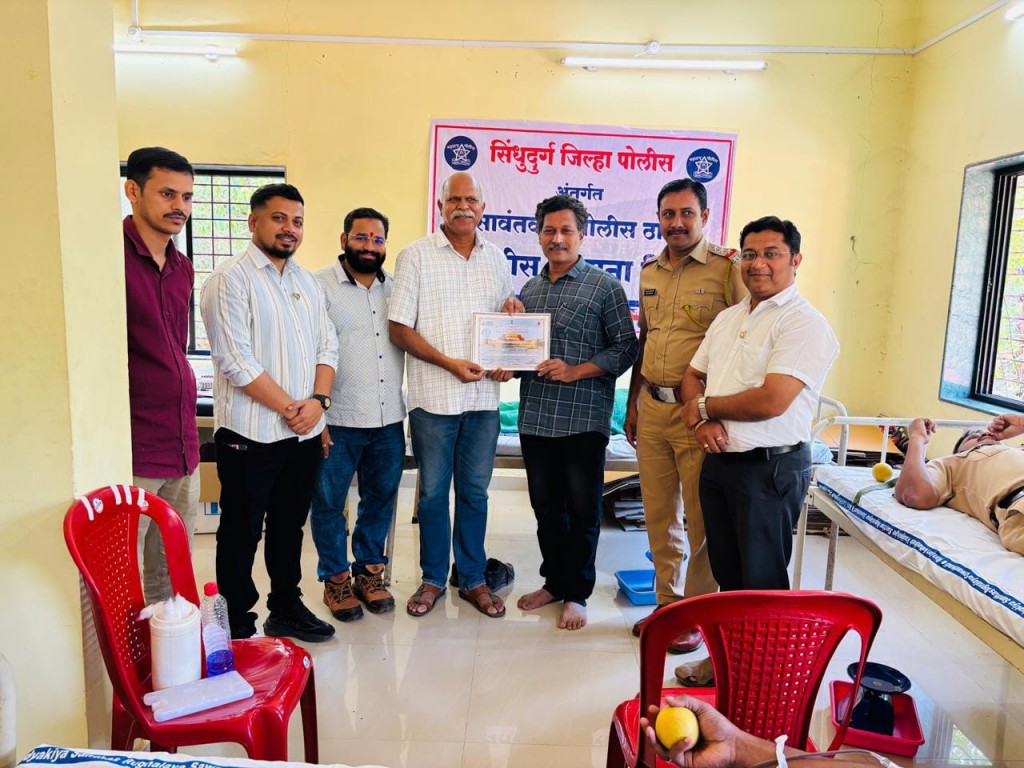 यामध्ये पोलीस अधिकारी अंमलदार तसेच विविध नागरिक अशा 40 रक्तदात्यांनी सहभाग नोंदविला आहे. या शिबिराचे उद्घाटन उप विभागीय पोलीस अधिकारी सावंतवाडी विनोद कांबळे यांनी केले. या कार्यक्रमास सेवानिवृत्त डी.वाय. एस.पी. दयानंद गवस, नगरसेवक देव्या सूर्याजी, ॲड. सिद्धार्थ भांबुरे, पोलिस निरीक्षक अमोल चव्हाण तसेच कुडाळ ,वेंगुर्ला, निवती, दोडामार्ग, बांदा पोलीस ठाण्याचे अधिकारी व सावंतवाडी पोलीस ठाण्यातील सर्व अधिकारी व अंमलदार उपस्थित होते.