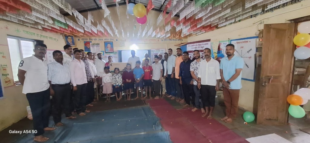 या कार्यक्रमासाठी प्रमुख पाहुणे म्हणून सरपंच गुलाबराव गावडे, केंद्र प्रमुख भावना गावडे, शाळा व्यवस्थापन समिती अध्यक्ष सायली गावडे, पोलीस पाटील रवींद्र गावडे यांच्यासह गावातील मान्यवर, आजी-माजी विद्यार्थी, ग्रामस्थ व शालेय व्यवस्थापन समितीचे सर्व सदस्य मोठ्या संख्येने उपस्थित होते. या विशेष दिनानिमित्त माजी विद्यार्थी रमेश गावडे व नामदेव गावडे यांनी आणलेला केक सर्व मान्यवरांच्या उपस्थितीत कापण्यात आला.