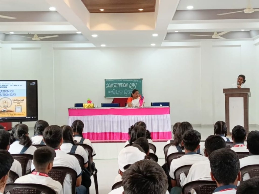 यावेळी संविधानावर आधारित प्रश्नमंजुषा स्पर्धा सुद्धा घेण्यात आली. कार्यक्रमाला प्रमुख मार्गदर्शक या नात्याने ऍड.सायली सावंत उपस्थित होत्या. त्यांनी विद्यार्थ्यांना संविधानातील महत्त्वाच्या तरतुदींबाबत मार्गदर्शन केले. शाळेच्या अध्यक्षा ऍड.अस्मिता सावंतभोसले यांनी विद्यार्थ्यांना राज्यघटनेतील मूल्ये आचरणात आणण्याचे आवाहन केले. यावेळी मुख्याध्यापिका प्रियांका डिसोझा व शिक्षक वर्ग उपस्थित होता.