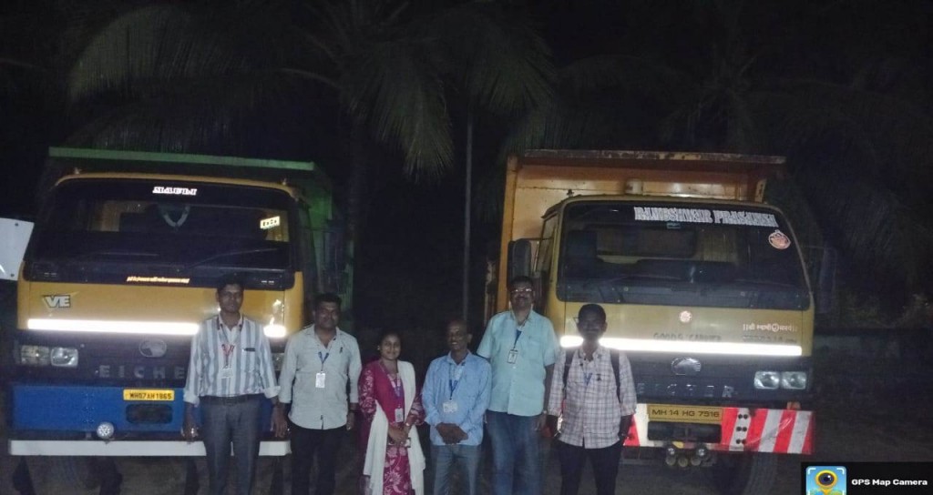 या पथकामध्ये खालील मंडळ अधिकारी रविकांत तारी, ग्राम महसूल अधिकारी भरत नेरकर, सोनाली मयेकर, स्नेहल सगरे, शिवदास राठोड यांचा समावेश होता. पथकाने पकडलेल्या दोन्ही वाहनांची तपासणी केली असता, त्यामध्ये प्रत्येकी दोन ब्रास याप्रमाणे एकूण चार ब्रास वाळूचा अवैध साठा आढळून आला.
