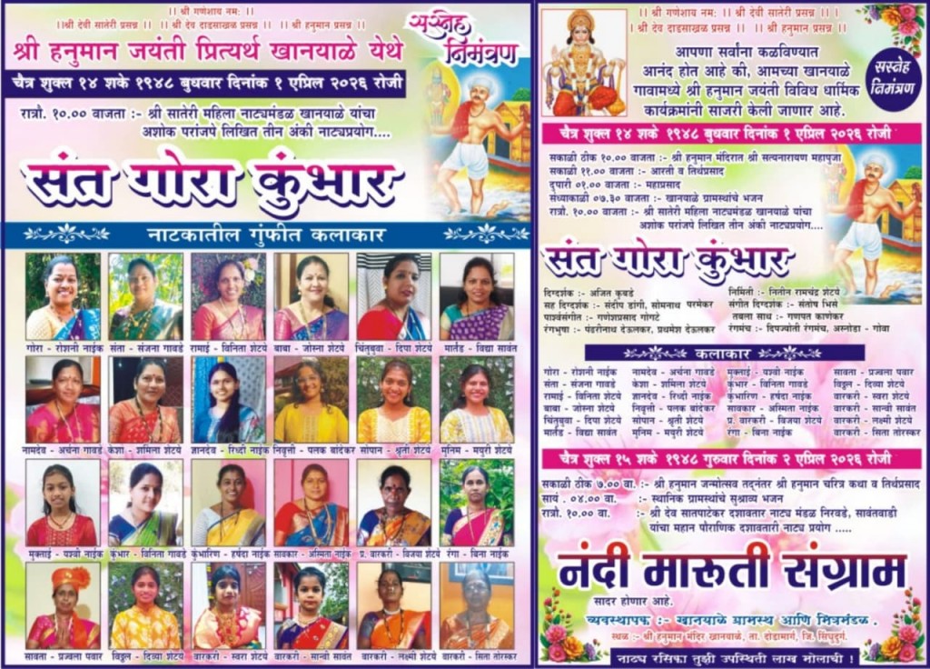 देवगड : देवगड तालुक्यातील वाडातर येथे तरुण विकास मंडळ, वाडातर (रजि.) मुंबई यांच्या वतीने श्री हनुमान जन्मोत्सव सोहळा २०२६ च मोठ्या उत्साहात आयोजन करण्यात येणार आहे. विविध धार्मिक,सांस्कृतिक व सामाजिक कार्यक्रमांचे आयोजन करण्यात आले आहे.हनुमान जन्मोत्सव दरम्यान ह.भ.प. सौ. लतिकाताई सावंत (स्वराज्यरक्षक संभाजी फेम धाराऊमाता) यांचे प्रवचन कार्यक्रम होणार आहे.
