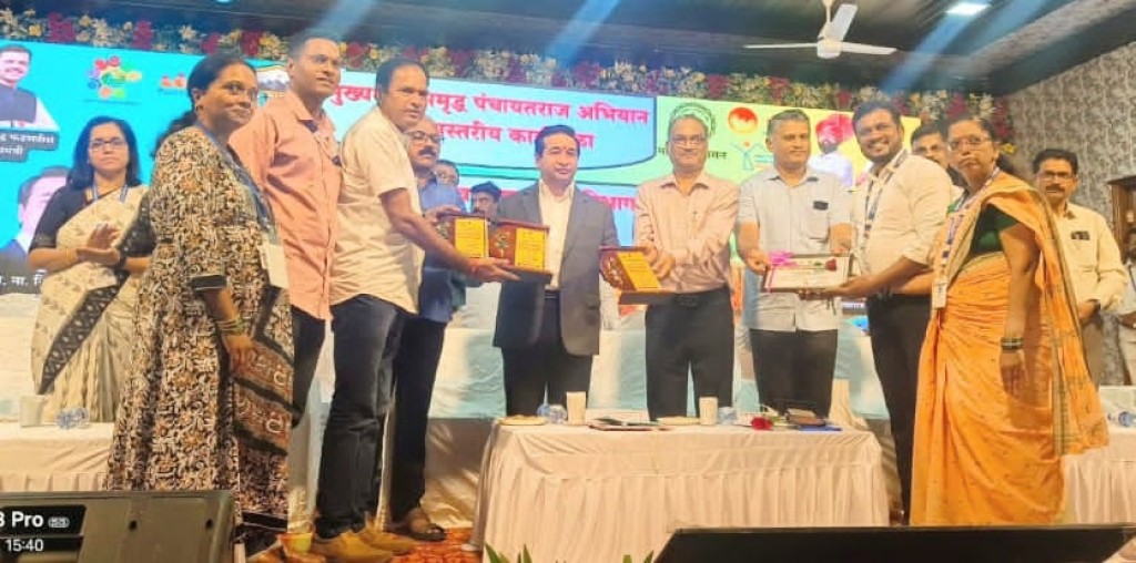 देवगड : महाआवास अभियान ग्रामीण सन 2023 - 24 व 2024 - 25 अंतर्गत पुरस्कार वितरण सोहळा इच्छापूर्ती मंगल कार्यालय ओरोस सिंधुदुर्ग येथे मंत्री , मत्स्यव्यवसाय व बंदरे , महाराष्ट्र राज्य तथा पालकमंत्री सिंधुदूर्ग नितेश राणे ,मुख्य कार्यकारी अधिकारी रवींद्र खेबुडकर, प्रकल्प संचालक उदय पाटील, उपमुख्य कार्यकारी अधिकारी(ग्रा.पं.) जयप्रकाश परब तसेच उपस्थित मान्यवर यांच्या उपस्थितीत संपन्न झाला. या सोहळ्यात महा आवास अभियान ग्रामीण अंतर्गत जिल्हास्तरावरती देवगड पंचायत समिती अव्वल ठरल्याबद्दल मंत्री , मत्स्यव्यवसाय व बंदरे , महाराष्ट्र राज्य तथा पालकमंत्री सिंधुदूर्ग नितेशजी राणे यांच्या हस्ते पंचायत समिती देवगडचा गौरव करण्यात आला . हा सन्मान स्वीकारताना देवगड पंचायत समितीचे गटविकास अधिकारी अरुण चव्हाण, सहाय्यक गटविकास अधिकारी दिगंबर खराडे, कनिष्ठ प्रशासन अधिकारी कुणाल मांजरेकर, वरिष्ठ लिपिक कुंदा बोंडाळे, ग्रामपंचायत अधिकारी संघटनेच्या सचिव श्रद्धा वळंजू, देवेंद्र घाटे आदी मान्यवर उपस्थित होते.