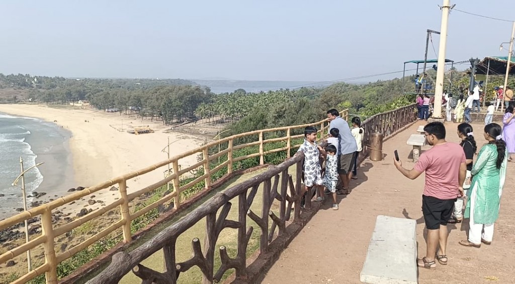 देवगड : सरत्या वर्षाला निरोप आणि नवीन वर्षाच्या स्वागतासाठी मोठ्या संख्येने पर्यटक देवगड मध्ये दाखल झाले आहेत.देवगड तालुक्यातील सर्वच पर्यटन स्थळे पर्यटकांनी गजबजली आहेत.तसेच हॉटेल व्यवसाय देखील तेजीत आहे, सर्व हॉटेल्स हाऊसफुल झाले आहेत, येथील खाद्यसंस्कृती मासे तसेच स्वच्छ सुंदर समुद्र किनारे तसेच बोटिंगला पर्यटकांची पसंती पाहायला मिळते. देवगड तालुक्यातील विजयदुर्ग किल्ला येथे किल्ल्याला भेट देण्यासाठी आणि बोटिंगचा आनंद पर्यटक लुटत आहेत.