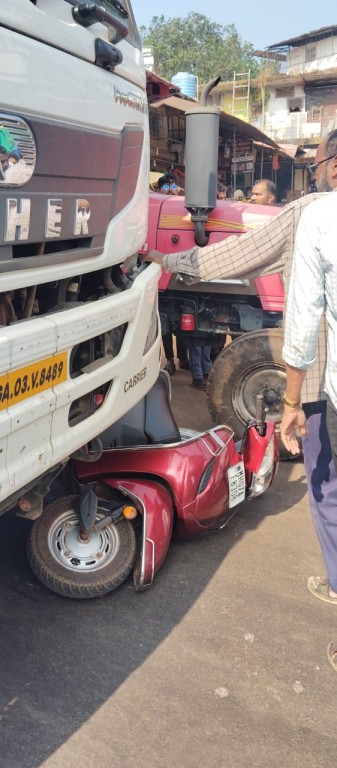 दोडामार्ग बाजारपेठेत नगरपंचायतीचा कचरा संकलन करणारा ट्रॅक्टर उभा होता. तर दुसऱ्या बाजूला कोंबडी वाहतूक करणारा टेम्पो उभा होता. यावेळी एक युवक या दोन्ही वाहनांच्या मधून दुचाकी नेत असताना मागून येणाऱ्या एक डंपरने स्कूटरला धडक दिली. या धडकेमुळे स्कुटर चालक थेट बाजूला उभ्या असलेल्या नगरपंचायत ट्रॅक्टरच्या चाकाला आपटून रस्त्यावर कोसळला. मात्र ट्रॅक्टर उभा असल्याने स्कुटर चालक ट्रॅक्टरखाली जाण्यापासून वाचला आणि मोठा अनर्थ टळला, अशी माहिती प्रत्यक्षदर्शींनी दिली. अपघातानंतर बचाव कार्यासाठी नागरिक सरसावले. घटनेची माहिती मिळताच दोडामार्ग पोलीस तातडीने घटनास्थळी दाखल झाले. जखमी स्कुटर चालकाला त्वरित येथील ग्रामीण रुग्णालयात उपचारासाठी हलविण्यात आले.