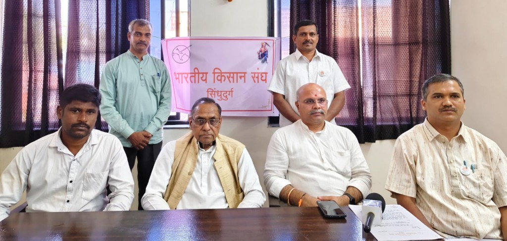 सावंतवाडी : शेती व शेतकरी यांचे प्रश्न सोडवण्यासाठी भारतीय किसान संघ नेतृत्व करत असून जैवविविधतेने नटलेल्या शेतीप्रधान सिंधुदुर्ग जिल्ह्यात बदललेल्या पर्यावरणाने शेती आणि शेतकरी यांची स्थिती चिंतनीय झाली आहे. मनुष्यबळाची कमतरता, पावसाची अनियमितता, वन्य प्राण्यांचा वाढलेला उपद्रव यामुळे शेतकरी शेती सोडून शहराकडे चालला आहे. या परिस्थितीत भारतीय किसान संघ ही देशातील सर्वात मोठी शेतकरी संघटना रचनात्मक काम, संघटन आणि संघर्ष या त्रिसूत्रीच्या आधारे सिंधुदुर्ग जिल्ह्यात कार्यरत असल्याचे मत भारतीय किसान संघाचे राष्ट्रीय उपाध्यक्ष डॉ. विशाल चंद्रकार यांनी व्यक्त केले. आयोजित पत्रकार परिषदेत ते बोलत होते.