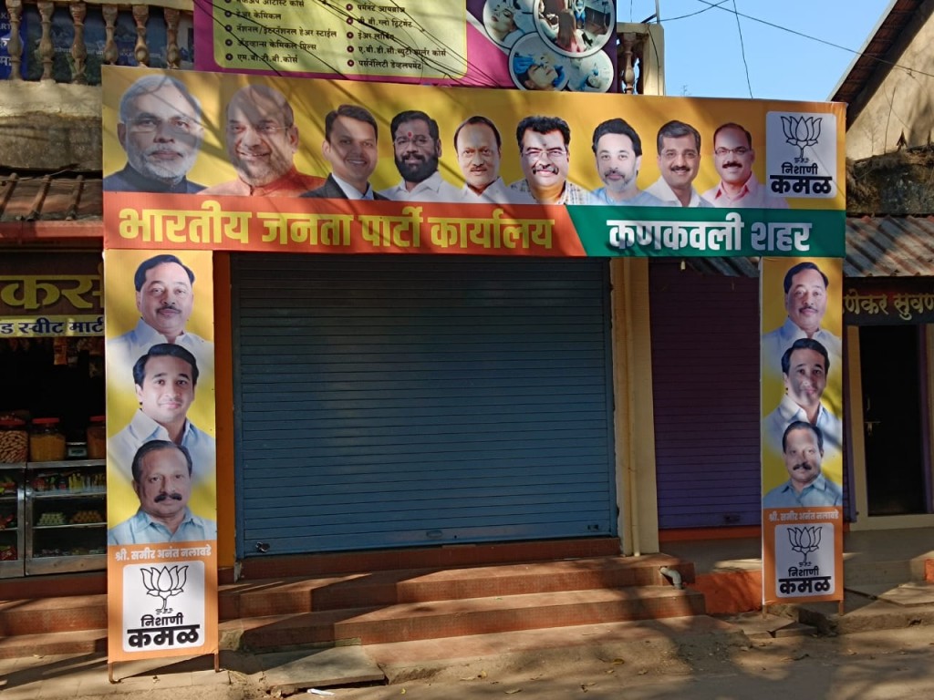 स्थानिक स्वराज्य संस्थांच्या अनुषंगाने विशेषतः भाजप व शिंदे शिवसेना या दोन्ही पक्षांच्या नेते मंडळींनी सातत्याने स्वबळाची भाषा केली. दुसऱ्या बाजूला कणकवली शहरात भाजपच्या विरोधात शहर विकास आघाडी स्थापन करण्याचा प्रयत्नही काही पक्षांच्या मंडळींनी केला होता. मात्र अलीकडेच खासदार नारायण राणे यांनी पत्रकार परिषद घेऊन महायुतीच्या माध्यमातूनच निवडणुका लढवल्या जाव्यात अशी इच्छा व्यक्त केली होती. साहजिकच स्वबळावर निवडणूक लढवण्याचा व शहर विकास आघाडी स्थापन करण्याचा मुद्दा सध्या तरी मागे पडलेला दिसत आहे. याच पार्श्वभूमीवर भाजप प्रचार संपर्क कार्यालयाबाहेर असलेल्या कमानीवरील नरेंद्र मोदी, अमित शहा, देवेंद्र फडणवीस, नारायण राणे, नीतेश राणे, प्रमोद जठार, प्रभाकर सावंत, समीर नलावडे या भाजपच्या मंडळींसह उपमुख्यमंत्री एकनाथ शिंदे, अजित पवार, आमदार निलेश राणे यांचे फोटो सध्या कणकवलीकरांचे लक्ष वेधून घेत आहेत.