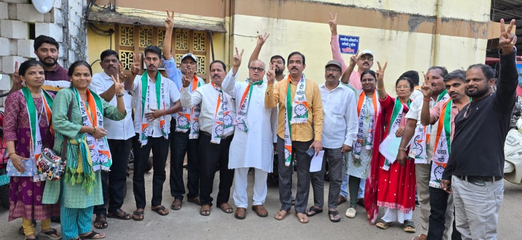 शक्तीप्रदर्शन करत कॉग्रेसच्या उमेदवारांनी आपले उमेदवारी अर्ज दाखल केले. यावेळी माजी नगराध्यक्ष ॲड. दिलीप नार्वेकर, तालुकाध्यक्ष अभय मालवणकर, माजी नगरसेवक सुनील पेडणेकर, अरूण भिसे, ॲड. राघवेंद्र नार्वेकर, समीर वंजारी, तौकीर शेख, बाळा नमशी, संजय लाड, कौस्तुभ पेडणेकर आदी काँग्रेसचे उमेदवार व पदाधिकारी कार्यकर्ते उपस्थित होते.
