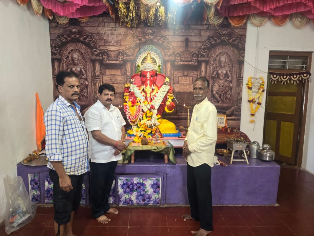 कणकवली : कणकवली शहरातील टेंबवाडी येथील संतांचा गणपतीचं दरवर्षीप्रमाणे राष्ट्रवादी जिल्हाध्यक्ष अबिद नाईक यांनी दर्शन घेतले. नाईक यांनी गणपती बाप्पाला फुलांचा हार अर्पण केला. यावेळी गार्हाणे घालताना सर्वांना सुखी, समृद्धी व उत्तम आरोग्य लाभो ही प्रार्थना केली. त्यावेळी संतांच्या गणपतीचे मानकरी सुनील सावंत यांनी अबिद नाईक यांचा सन्मान केला. यावेळी महेश कोवळे, संजय सावंत व ग्रामस्थ उपस्थित होते.