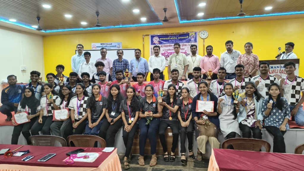 कणकवली : शिक्षण प्रसारक मंडळाचे कणकवली कॉलेज कणकवली येथे जिमखाना विभागातर्फे मुंबई विद्यापीठ अंतर्गत कोकण झोन - ४ ची बुद्धीबळ स्पर्धा २५ सप्टेंबर ते २७ सप्टेंबर या दरम्यान पार पडली. स्पर्धेच्या उद्घाटन प्रसंगी शिक्षण प्रसारक मंडळाच्या चेअरमन प्रा. डॉ.राजश्री साळुंखे, महाविद्यालय विकास समितीचे सदस्य जगन्नाथ वळंजू, कोकण झोनचे समन्वयक शशांक उपशेट्ये, ग्रामीण विकास विभागप्रमुख डॉ. राजेंद्र मुंबरकर, मुंबई विद्यापीठ सिनेट सदस्य प्रा. डॉ. सोमनाथ कदम , जिमखाना विभागप्रमुख प्रा.हेमंत गावित उपस्थित होते.
