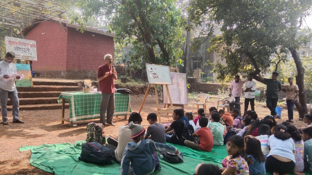 गोपुरी आश्रमाच्या जीवन शिक्षण उपक्रमाअंतर्गत आश्रमाच्या चिकूच्या बागेत कावी आर्टस् प्रशिक्षण आयोजित केले होते. याप्रसंगी श्री. केरकर बोलत होते. यावेळी पौर्णिमा केरकर, गोपुरी आश्रमाचे अध्यक्ष प्रा. राजेंद्र मुंबरकर, सचिव विनायक उर्फ बाळू मेस्त्री, चित्रकार नामनंद मोडकर, वामन पंडित, प्रा. बाळकृष्ण गावडे, संदीप सावंत, विनायक सापळे, धीरज मेस्त्री, अर्पिता मुंबरकर, दर्शना पाताडे, सदाशिव राणे, नितीन तळेकर, समृद्धी केरकर, सुरेखा वरडेकर, सनीश अवखळे, वेदांत केरकर, श्रेयश शिंदे, सहदेव पाटकर आदी उपस्थित होते.