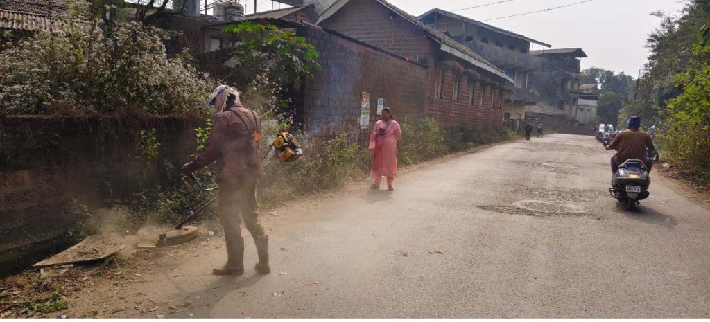 कणकवली : कणकवलीत प्रभाग क्रमांक १० च्या भारतीय जनता पक्षाच्या नगरसेविका आर्या औदुंबर राणे यांनी आपल्या नवीन वर्षाची सुरवात स्वच्छ कणकवली सुंदर कणकवली या नाऱ्याने केली आहे. प्रभाग 10 मधील मसुरकर किनई रोडच्या दुतर्फा उगवलेले गवत आणि गटार सफाई करण्याची मागणी स्थानिक जनतेतून होत होती. जनतेच्या मागणीची तात्काळ दखल घेत नगरसेविका आर्या राणे यांनी नगरपंचायत प्रशासनाला तात्काळ सूचना देत मसुरकर किनई सफाईच्या सूचना केल्या. नगरसेविका आर्या राणे यांनी स्वतः उपस्थित राहून मसुरकर किनई रोडलगत उगवलेले गवत कर्मचाऱ्यांकडून ग्रास कटरने कापून घेतले. तसेच गटारातील कचरा सफाई करून घेत मसुरकर किनई रोड परिसर स्वच्छ केला. त्यामुळे स्थानिक नागरिकांकडून समाधान व्यक्त होत आहे.