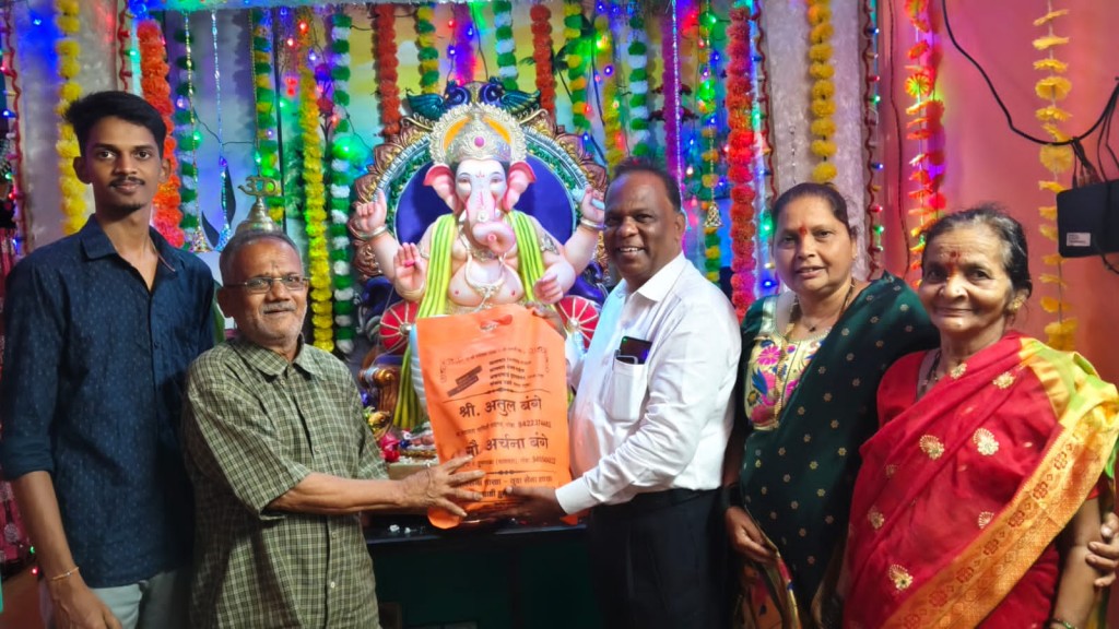 कुडाळ : हुमरमळा वालावल गावातील प्रत्येक कुटुंबाशी नाळ जुळलेले कुटुंब म्हणजे अतुल बंगे दांपत्य यांनी दरवर्षी प्रमाणे याहीवर्षि गावातील प्रत्येक कुटुंबातील गणपती दर्शन घेऊन सेवा बजावली. अतुल बंगे दांपत्याने गावातील प्रत्येक कुटुंबाला आपलेसे वाटणारे व्यक्तीमत्व अनेक कार्यक्रमांबरोबरच सांस्कृतिक कार्यक्रमांत सहभाग घेत गावातील महीला व जेष्ठ ग्रामस्थांसाठी अनेक उपक्रम राबवत असतात. दरवर्षी गावातील प्रत्येक कुटुंबातील गणपती दर्शन घेऊन पुजा साहीत्य देऊन श्री गणरायांचे आशिर्वाद घेऊन गावातील प्रत्येक कुटुंबाची विचार पुस करुन अडीअडचणी विचारुन घेत असतात. या गणोत्सव काळात प्रत्येक कुटुंबाशी हीतगुज करुन आपले जिव्हाळ्याचे संबंध बंगे कुटुंब सांभाळत आहेत.