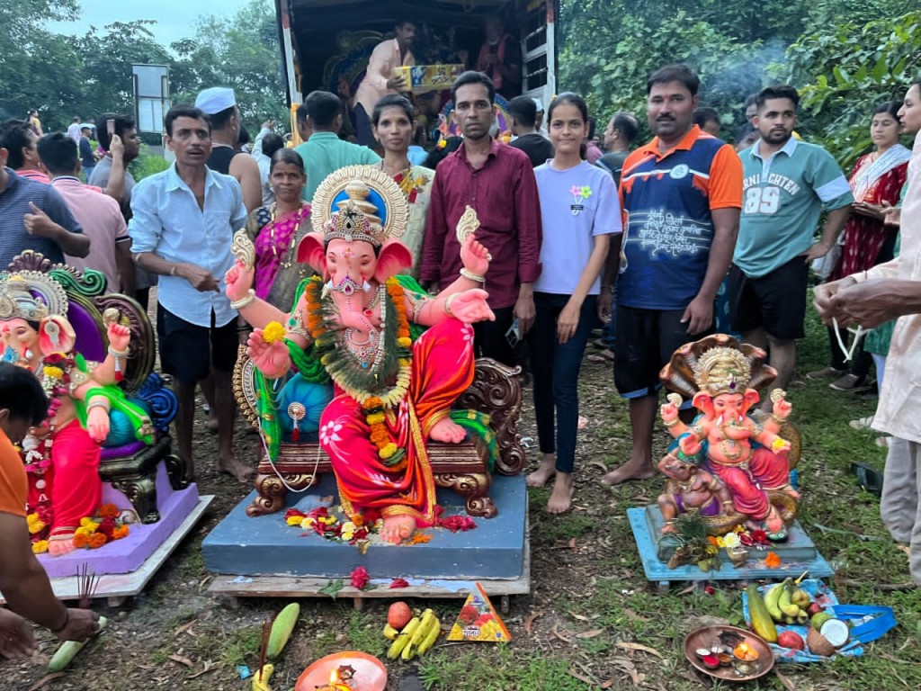 पणदूर : कुडाळ तालुक्यातील पणदूर आणि कडावल दशक्रोशीत शनिवारी सायंकाळी ११ दिवसांच्या गणपतींचे वाजत गाजत मोठ्या उत्साहात विसर्जन करण्यात आले. गणपती बाप्पा मोरया!पुढच्या वर्षी लवकर या!! गणपती गेले गावाला, चैन पडेना आम्हाला अशा जय घोषाने आसमंत दुमदुमून गेला होता. पणदूर, डिगस, अणाव, वेताळबांबर्डे, हुमरमळा, आवळेगाव, कडावल, भडगाव, निरूखे, पांग्रड, वर्दे, घोडगे, सोनवडे, भरणी, जांभवडे, कुसगांव, गिरगाव, हिर्लोक सह दशक्रोशीत ढोल ताशांचा गजरात,फटाक्यांच्या आतिषबाजीत गणपती बाप्पांना जड अंतकरणाने निरोप देण्यात आला.