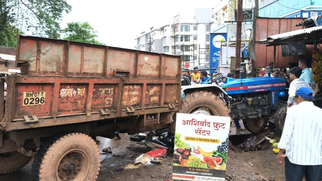 मिळालेल्या माहितीनुसार, नगरपंचायतीकडून लावण्यात आलेले बॅनर काढण्याचे काम सुरू होते. बॅनर ट्रॅक्टरमध्ये टाकून आणले जात असताना, अचानक ट्रॅक्टरवरील चालकाचा ताबा सुटला. अनियंत्रित झालेल्या या ट्रॅक्टरखाली दोन दुचाकीस्वार चिरडले गेले. या अपघातात दोन्ही दुचाकीस्वार गंभीर जखमी झाले आहेत.