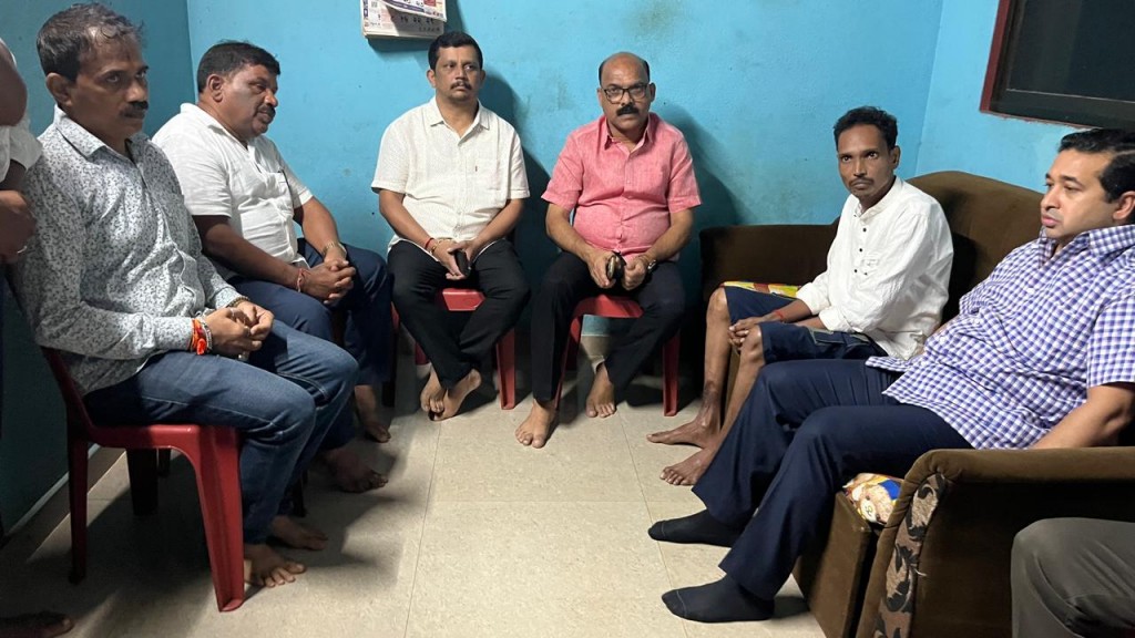 कुडाळ : कुडाळ नगरपंचायतीचे गटनेते व नगरसेवक विलास कुडाळकर यांच्या भगिनी हेमलता धोंडू कुडाळकर यांचे काही दिवसांपूर्वी अपघाती निधन झाले होते. या दुर्दैवी घटनेनंतर सिंधुदुर्ग जिल्ह्याचे पालकमंत्री नितेश राणे यांनी शुक्रवारी कुडाळ येथील त्यांच्या निवासस्थानी जाऊन कुडाळकर कुटुंबीयांची भेट घेतली व त्यांचे सांत्वन केले. कुडाळकर कुटुंबीयांच्या दुःखात सहभागी होत, पालकमंत्री नितेश राणे यांनी विलास कुडाळकर आणि त्यांच्या कुटुंबाला धीर दिला.