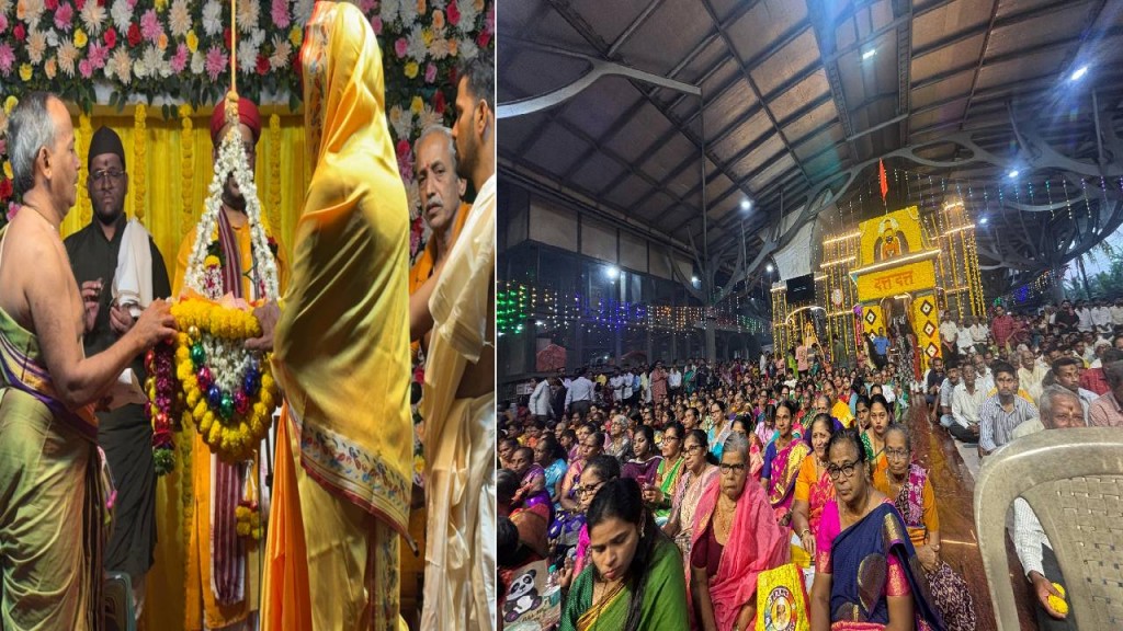सिंधुदुर्ग : कुडाळ तालुक्यातील माणगाव येथे प. पू. टेंब्ये स्वामींनी स्थापलेले प्रसिद्ध श्री दत्त मंदिर येथे आजपासून दत्त जयंती उत्सवाला मोठ्या भक्तिभावात सुरुवात झाली. हजारो भाविकांनी श्री दत्तगुरूंचे दर्शन घेतले. ‘दिगंबरा दिगंबरा श्रीपाद वल्लभ दिगंबरा’ या नामघोषाने माणगावनगरी आज दुमदुमली. माणगाव क्षेत्री भाविकांनी मोठ्या प्रमाणात गर्दी गेली होती. सकाळपासूनच भाविक माणगावनगरीत प्रवेश करीत होते. अनेकांनी दत्तगुरूंच्या चरणी नतमस्तक होत आशीर्वाद घेतले. दत्त जयंती उत्सवानिमित्त परिसरात भक्तीमय वातावरण निर्माण झाले असून ‘श्री गुरुदत्त दिगंबर’ या जयघोषाने सर्वत्र नाद घुमला.