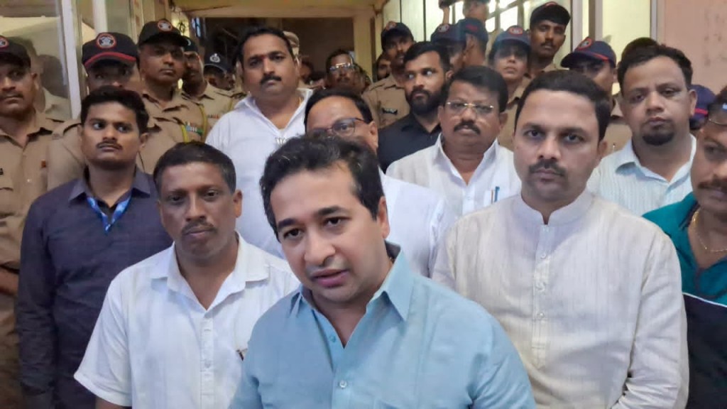मांस वाहतूक करणाऱ्या स्विफ्ट कार जाळपोळ प्रकरणा नंतर भाजपचे कसई दोडामार्ग नगरपंचायतचे नगराध्यक्ष चेतन चव्हाण, भाजप तालुकाध्यक्ष दीपक गवस यांसहित अन्य तिघांना संशयित आरोपी म्हणून ताब्यात घेतले. त्यानंतर तालुक्यातील वातावरण तंग झाले होते. शेकडो कार्यकर्त्यांनी तहसील कार्यालया समोर मोठा जमाव केला होता. कडक पोलिस बंदोबस्त सहित साटेली भेदशी, दोडामार्ग मध्ये नाक्या नाक्यावर बंदोबस्त ठेवण्यात आला होता. त्याच रात्री पालकमंत्री नितेश राणे यांनी दोडामार्ग पोलीस ठाण्याला भेट दिली होती. तसेच कार्यकर्त्यांसोबत देखील संवाद साधला होता. मात्र शुक्रवारी या संशयित पाचही आरोपींना न्यायालयात हजर केल्यानंतर न्यायालयाने त्यांना मंगळवार पर्यंत पाच दिवसाची पोलीस कोठडी सुनावली. त्यानंतर तालुक्यातील वातावरण आहे तंग होते. याच पार्श्वभूमीवर शनिवारी सायंकाळी पालकमंत्री नितेश राणे यांनी दोडामार्ग पोलीस ठाण्याला पुनश्च भेट दिली. जिल्हा पोलीस अधीक्षक डॉ. मोहन दहिकर, अप्पर पोलीस अधीक्षक नयोमी साटम यांच्याशी चर्चा केली. यावेळी देखील तहसील कार्यालयाच्या आवारात कार्यकर्त्यांना मोठा जमाव उपस्थित होता. चर्चा आटोपून बाहेर येताच त्यांनी पत्रकारांशी संवाद साधला.