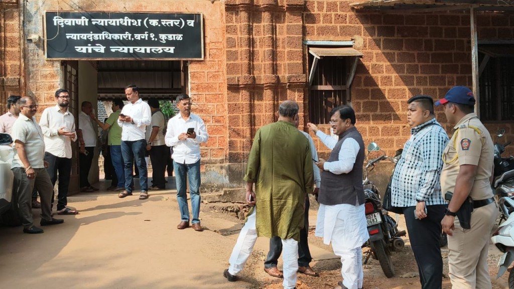 कुडाळ : भाजप आमदार प्रवीण दरेकर, आमदार निलेश राणे कुडाळ न्यायालयात दाखल // संविधान बचाव आंदोलन केल्याप्रकरणी आमदार प्रवीण दरेकर व आमदार प्रसाद लाड यांना कुडाळ न्यायालयाने केला होता अजामीनपात्र अटक वॉरंट जारी // आता काही वेळात कुडाळ न्यायालयात होणार सुनावणी // २६ जून २०२१ रोजी सिंधुदुर्ग जिल्ह्यात झालेल्या ओबीसी आंदोलनात सहभाग घेतल्या प्रकरणी कुडाळ पोलीस ठाण्यात झाला होता गुन्हा दाखल // आमदार निलेश राणे, मंत्री नितेश राणे यांच्यासह अन्य ४२ जणांवर आंदोलन प्रकरणी झाला होता गुन्हा दाखल // कुडाळ न्यायालयाच्या परिसरात कार्यकर्त्यांची मोठी गर्दी //