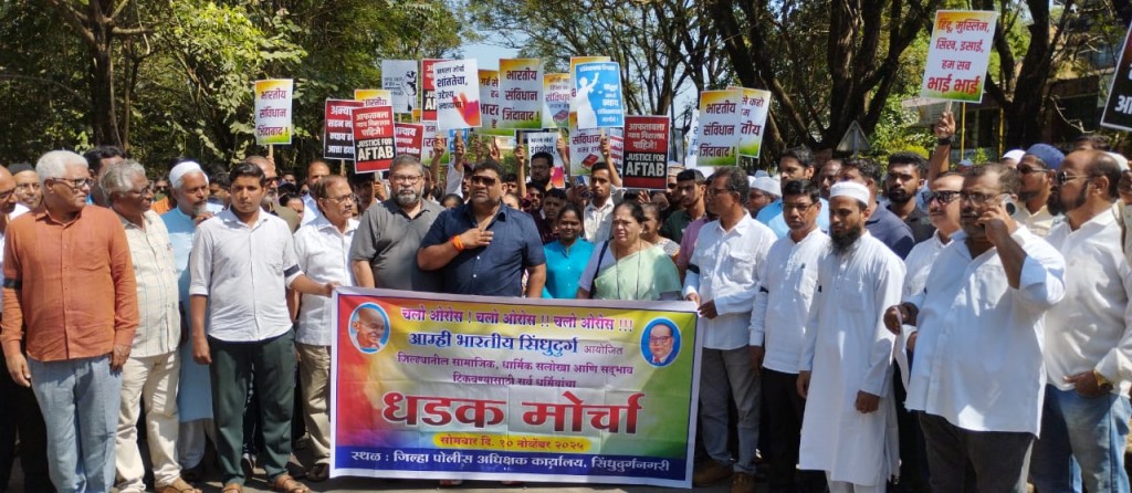 सिंधुदुर्गनगरी : सिंधुदुर्ग जिल्ह्यात सामाजिक सलोखा टिकून राहावा, तसेच प्रत्येक नागरिकाला संविधानाने दिलेल्या हक्कांनुसार निर्भयपणे व्यवसाय करता यावा, यासाठी समाजात अशांतता पसरविणाऱ्यांवर कठोर कारवाई करण्यात यावी, या मागणीसाठी आज सर्वधर्मीय बांधवांनी जिल्हा पोलीस अधीक्षक कार्यालयावर मोर्चा काढला.
