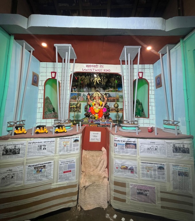 यासोबतच सावंतवाडी रेल्वे टर्मिनससंबंधी रेल्वे प्रवासी संघटनेच्या आंदोलनाच्या माध्यमातून झळकलेल्या बातम्यांची पोस्टर्स लावण्यात आली आहेत. त्यामुळे हा देखावा फक्त कलात्मकतेपुरता मर्यादित न राहता सामाजिक जाणीवा देणारा ठरत आहे. या सजावटीबद्दल बोलताना बांदिवडेकर कुटुंबीयांनी सांगितले की, "अपूर्ण अवस्थेत असलेल्या सावंतवाडी रेल्वे टर्मिनसची व्यथा या देखाव्याच्या माध्यमातून रेल्वे प्रशासनापर्यंत पोहोचावी हीच आमची भावना आहे." गणेश भक्तांची या अनोख्या देखाव्याला मोठी गर्दी होत असून, परिसरात सजावटीची चर्चा रंगली आहे. महाराष्ट्रातील सावंतवाडी हे कोकण रेल्वे मार्गावरील शेवटचे स्थानक आहे आणि त्यामुळे येथे टर्मिनस असणे अत्यंत महत्त्वाचे आहे. भूमिपूजन होऊन दहा वर्षे उलटूनही हे काम पूर्ण झालेले नाही, या वस्तुस्थितीवर या देखाव्याने रेल्वे अधिकारी आणि लोकप्रतिनिधींच्या डोळ्यात अंजन घातले आहे. या आगळ्यावेगळ्या आणि सामाजिक संदेश देणाऱ्या गणेश सजावटीला पाहण्यासाठी परिसरातील गणेशभक्तांची मोठी गर्दी होत असून, या अनोख्या कल्पनेचे सर्वत्र कौतुक होत आहे.