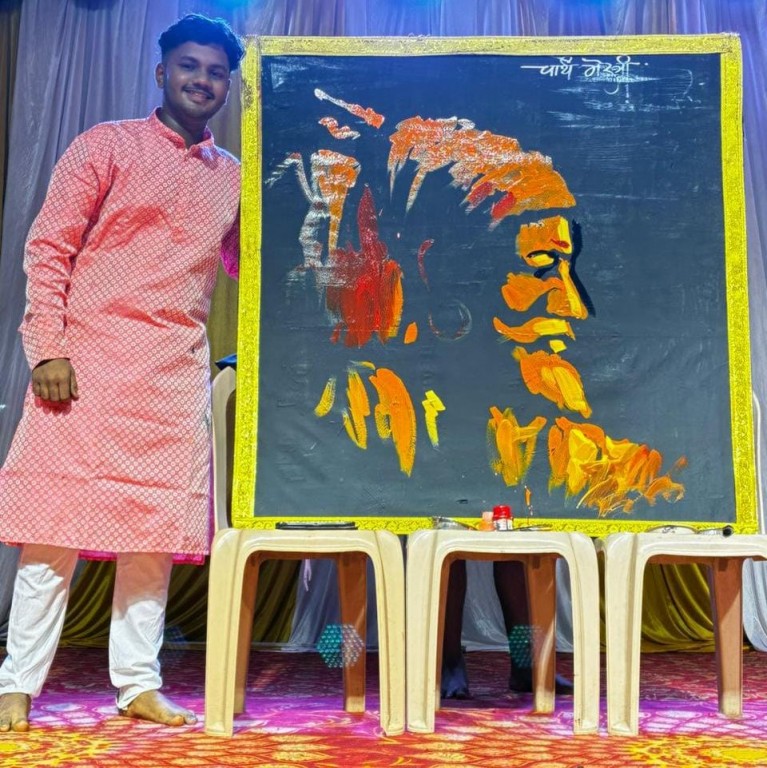 या कार्यक्रमादरम्यान, समर्थ मेस्त्री या युवा चित्रकाराने उपस्थितांना थक्क करून सोडले. त्याने चक्क आपल्या डोळ्यावर पट्टी बांधून अवघ्या काही मिनिटांत छत्रपती शिवाजी महाराजांचे एक अप्रतिम चित्र रसिकांसमोर रेखाटले. समर्थ मेस्त्री यांनी दाखवलेल्या या असामान्य कौशल्याने प्रेक्षकवर्ग अचंबित झाला. त्यांच्या या कलेला आणि पराक्रमाला उपस्थित रसिकांनी भरभरून दाद दिली. समर्थ मेस्त्री यांच्या या नेत्रदीपक कलाविष्काराने नवरात्रौत्सवातील कार्यक्रमाची रंगत अधिकच वाढवली.