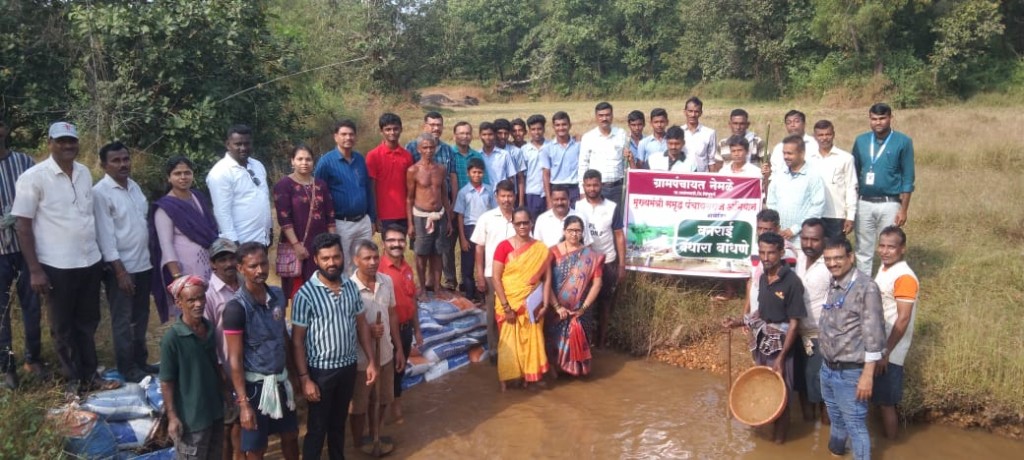 सावंतवाडी : मुख्यमंत्री समृद्ध पंचायतराज अभियांनांतर्गत नेमळे ग्रामपंचायत कार्यक्षेत्रात तीन बंधाऱ्यांचे बांधकाम यशस्वी रित्या पूर्ण करण्यात आले. या उपक्रमामुळे भुजल पातळी टिकून राहण्यास मदत होणार असून येत्या उन्हाळ्यातील पाणी टंचाई वरही प्रभावी उपाय ठरणार आहे. तसेच बांधाऱ्याच्या आजूबाजूला शेती असणाऱ्या शेतकऱ्यांना उन्हाळी पिक घेण्यासाठी या बांधाऱ्या पासून मिळणाऱ्या ओलाव्याचा फायदा होणार आहे