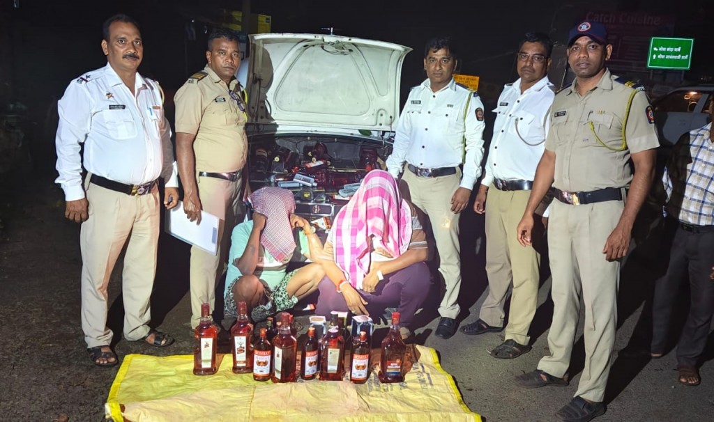 अटक आरोपी प्रवीण ईश्वर जाणवेकर (वय ५०), संतोष दिनकर माने (वय ४४) दोन्ही राहणार इचलकरंजी, ता. हातकणंगले, जि. कोल्हापूर असून गोवा बनावटीचे विविध ब्रँडचे २ लिटर, ७५० मिली आणि १८० मिली क्षमतेच्या एकूण सुमारे २५० बाटल्या. व वाहन अँबेसिडर कार (क्रमांक MH 12 JA 4490) आहे.