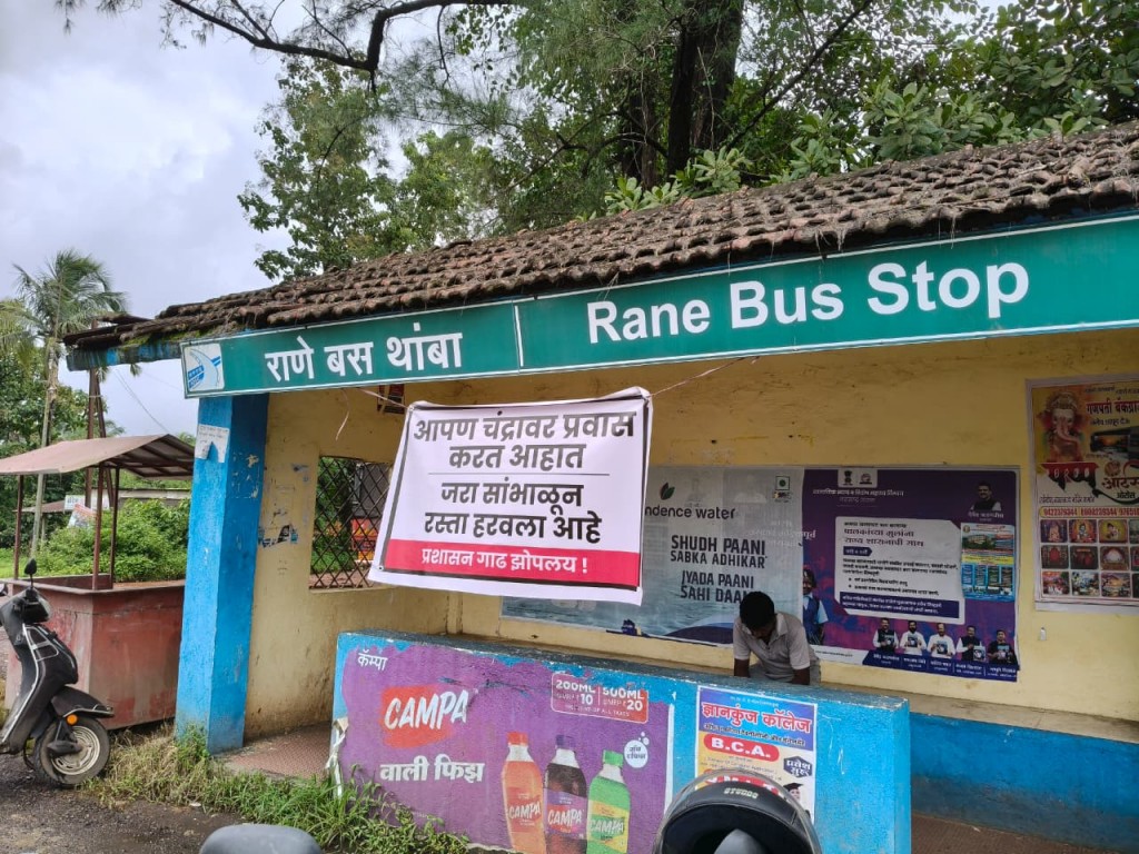 कुडाळ : कुडाळ तालुक्यात, रस्त्यांची झालेली दयनीय अवस्था आणि प्रशासनाच्या दुर्लक्षावर लक्ष वेधून घेणारे बॅनर सध्या चर्चेचा विषय बनले आहेत. राणे बस थांबा, हमरमळा आणि बेताबंबर्डे येथे लावलेल्या या बॅनरवर "आपण चंद्रावर प्रवास करत आहात, जरा सांभाळून, रस्ता हरवला आहे, प्रशासन झोपलय" असा उपरोधिक संदेश लिहिलेला आहे. हे बॅनर वाचून स्थानिक नागरिक प्रशासनाच्या कामकाजावर तीव्र नाराजी व्यक्त करत आहेत.