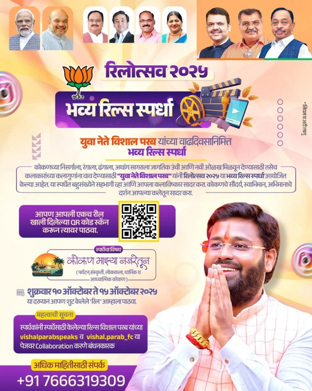 याच कोकणच्या सौंदर्याला, संस्कृतीला आणि स्वाभिमानाला जागतिक उंची आणि नवी ओळख मिळवून देण्यासाठी तसेच कलाकारांच्या कलागुणांना वाव देण्यासाठी युवा नेते विशाल परब यांच्या वाढदिवसानिमित्त 'रिलोत्सव' २०२५ या 'भव्य रिल्स स्पर्धेच' आयोजन करण्यात आल आहे.
